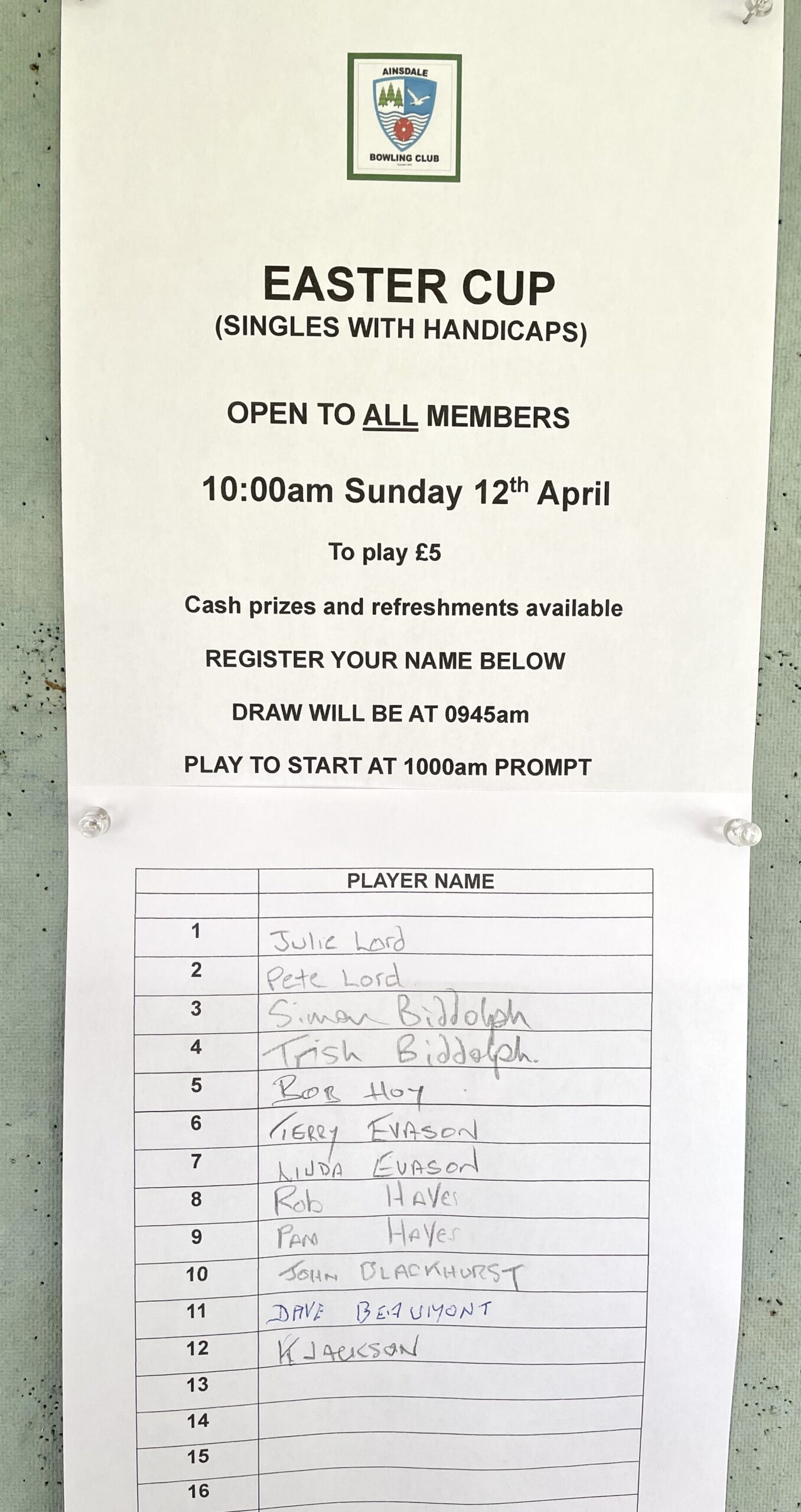 Easter Cup next Sunday open to all members